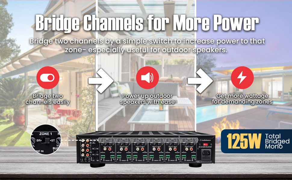 - Powerful Multi-Zone Amplification – Drive 12 channels (6 zones) delivering 50W/channel at 8 ohms or 75W at 4 ohms. Bridged stereo pairs @ 125W/zone for more power in larger rooms or outdoors. Perfect for multi-room/zone systems in both residential and commercial environments.