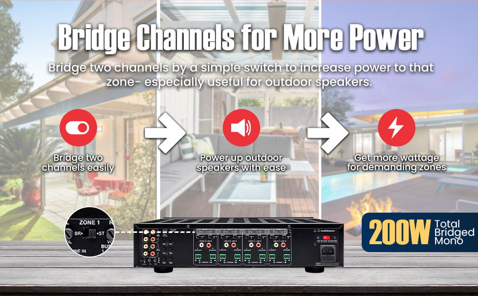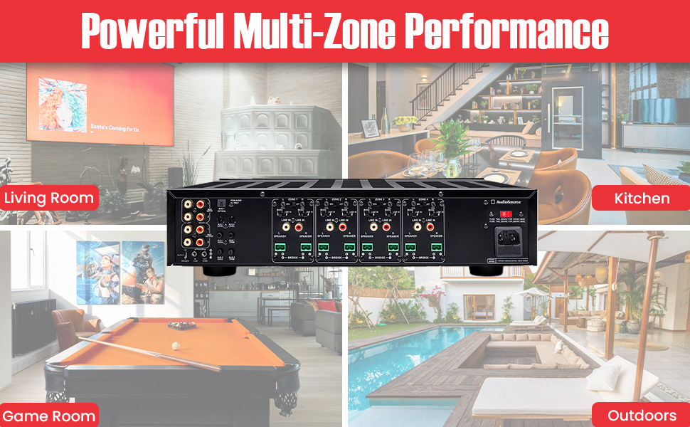 - Powerful Multi-Zone Amplification – Drive 8 channels (4 zones) delivering 65W/channel at 8 ohms, 100W/channel at 4 ohms. Bridged stereo pairs @ 200W/zone for more power in larger rooms or outdoors. Perfect for multi-room/zone systems in both residential and commercial environments.