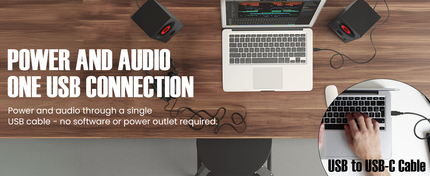 Setup is effortless with USB-C Plug & Play, powering the speakers directly from your PC with no software needed. Switch to Bluetooth 5.3 for seamless wireless streaming or use the 3.5mm AUX input for added flexibility.