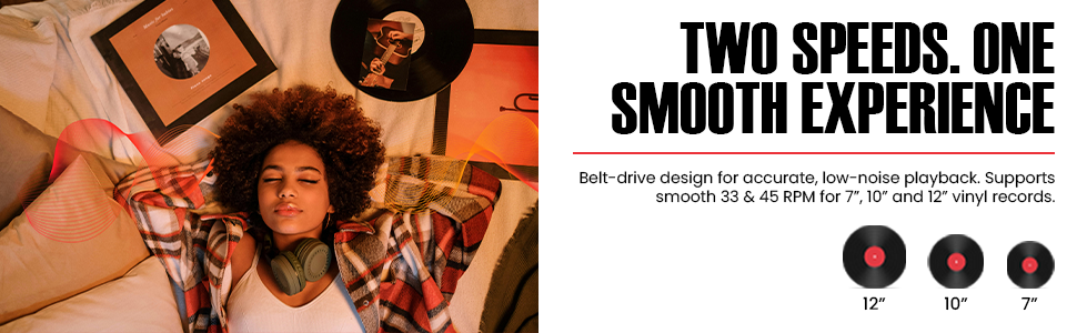 - Versatile Vinyl Playback – Enjoy both 33 ⅓ LPS and 45s on a 2-speed belt-driven system engineered for audiophiles and nostalgia seekers alike, delivering acoustically warm, organic sound with reduced motor noise for a truly authentic listening experience.